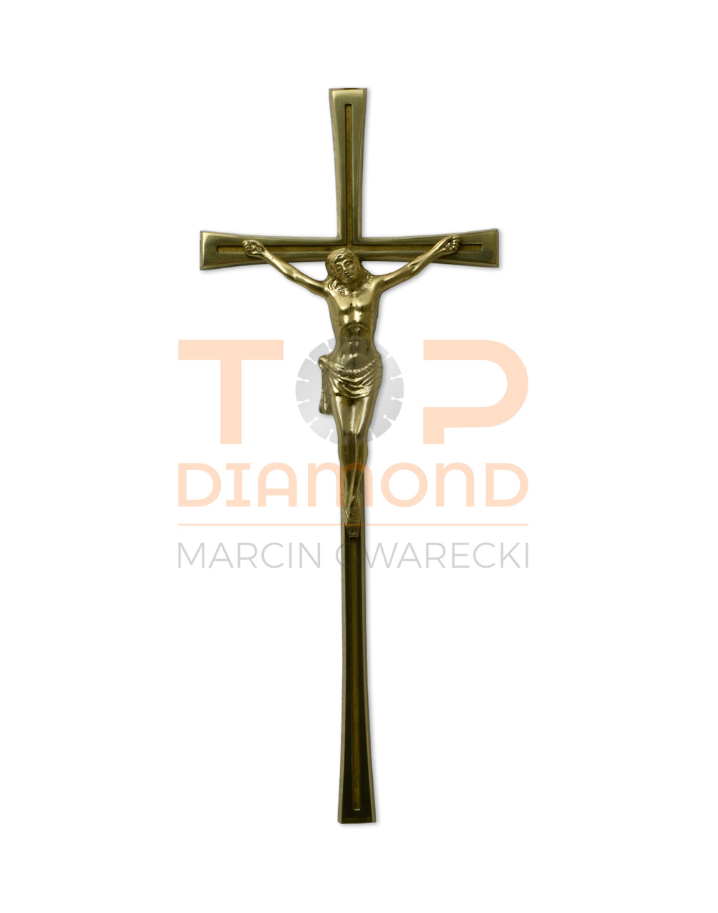 KRZYŻ MOSIĘŻNY ZŁOTY ROWEK Z WIZERUNKIEM 37cm